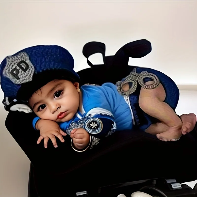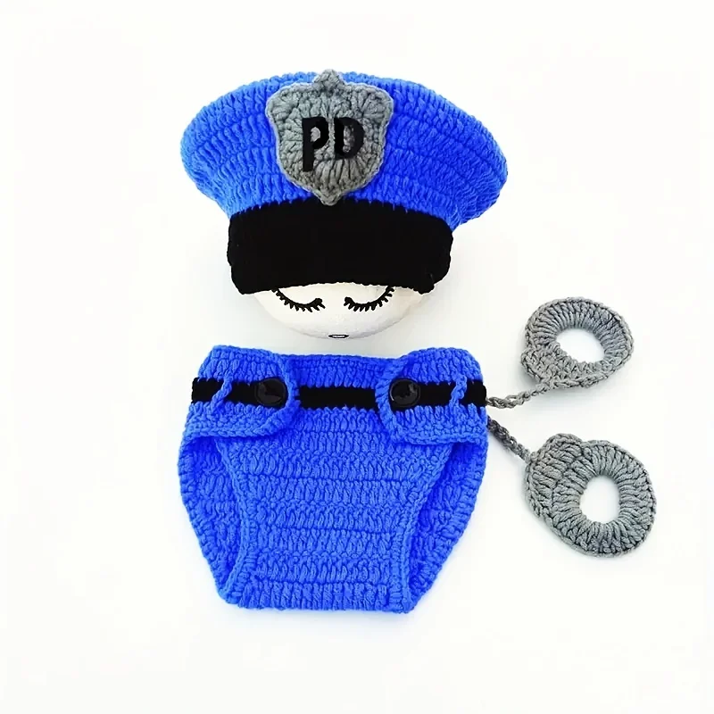 Adorable Blue Policeman Hat & Shorts Set Baby Costume Boy Girl Dress Romper Outf